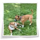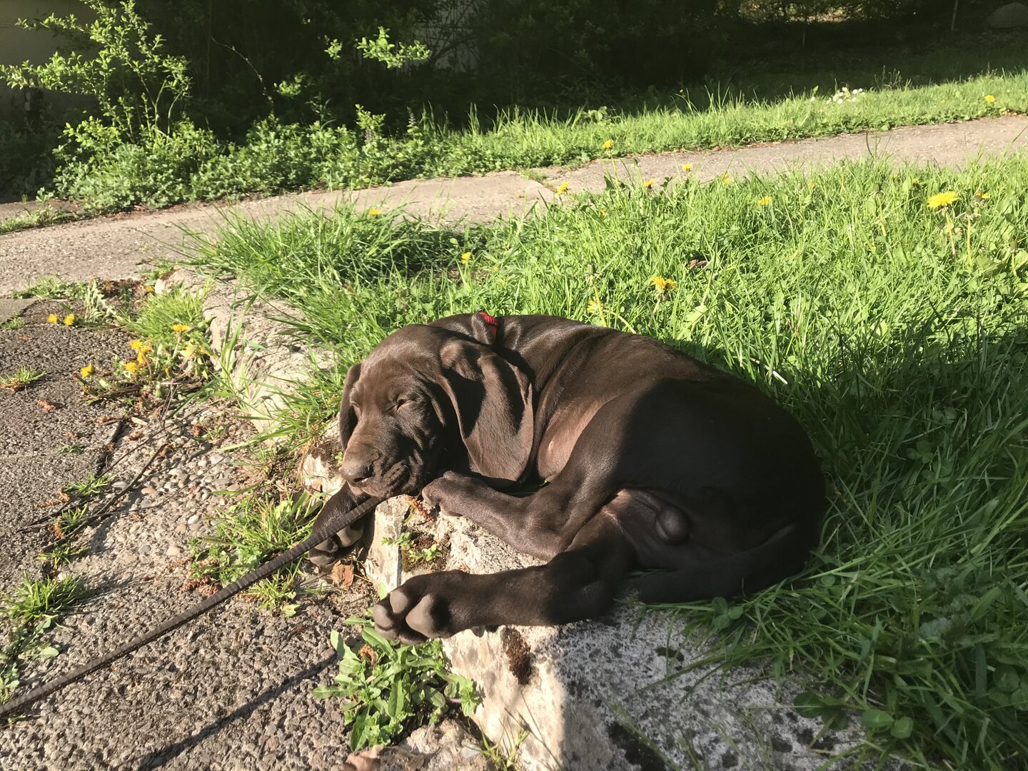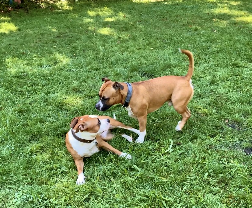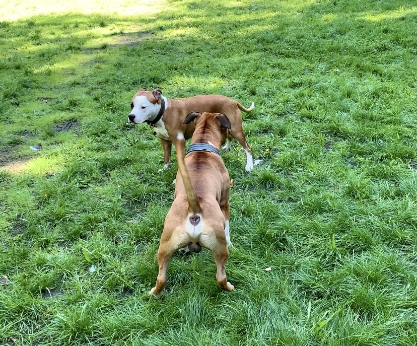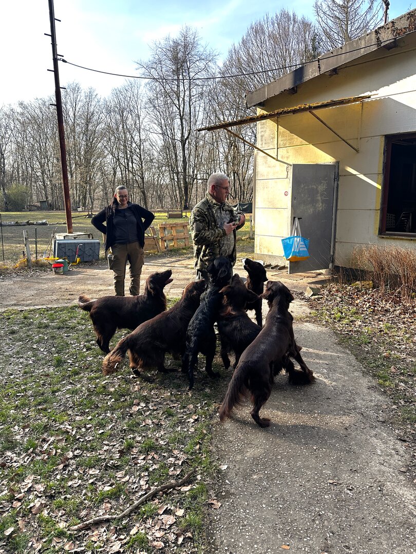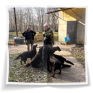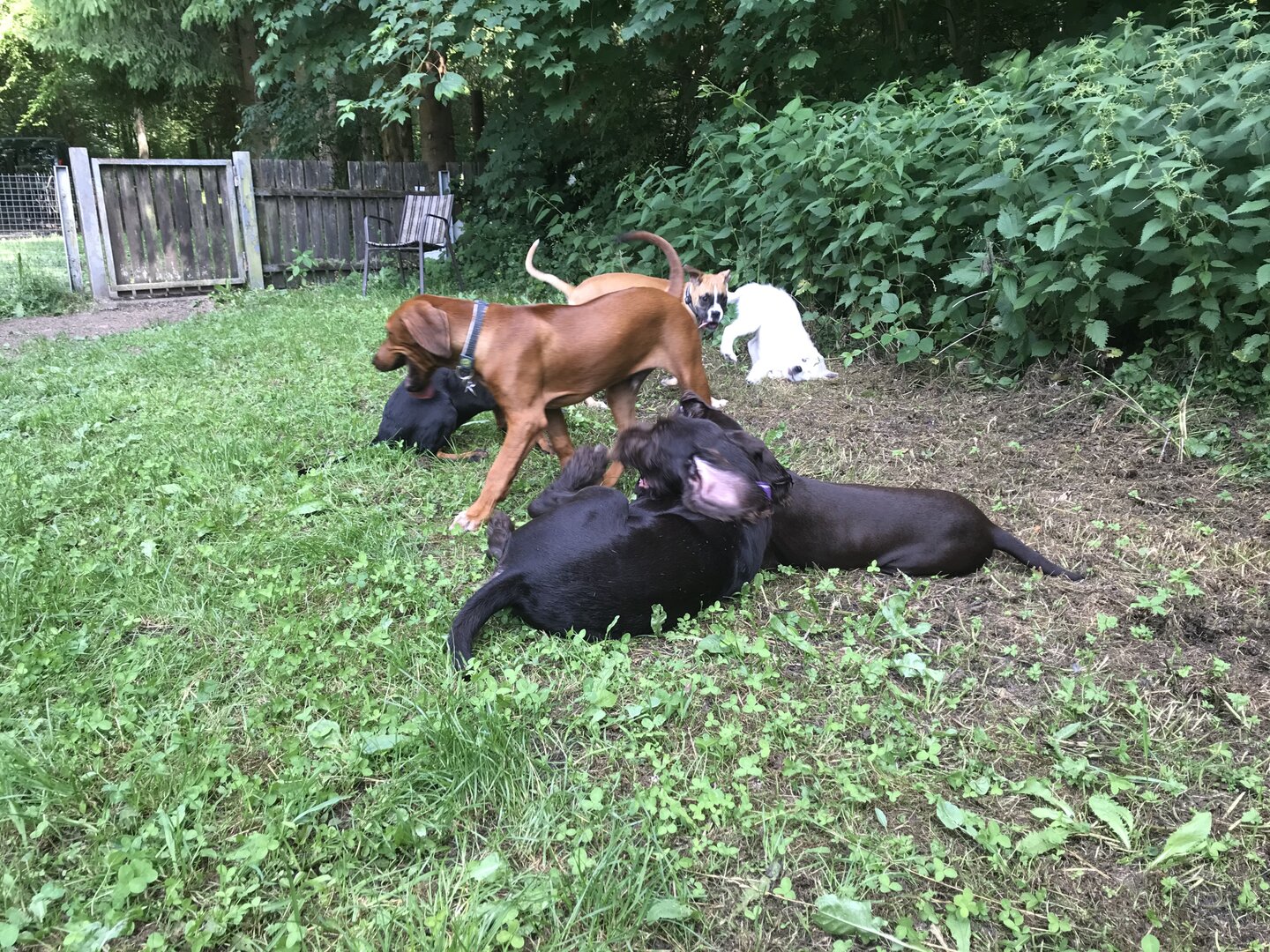 Vor Ort befinden sich auch erwachsene, gut sozialisierte Rüden und Hündinnen die uns unter anderem bei der Sozialisierung der Welpen und Junghunde unterstützen.